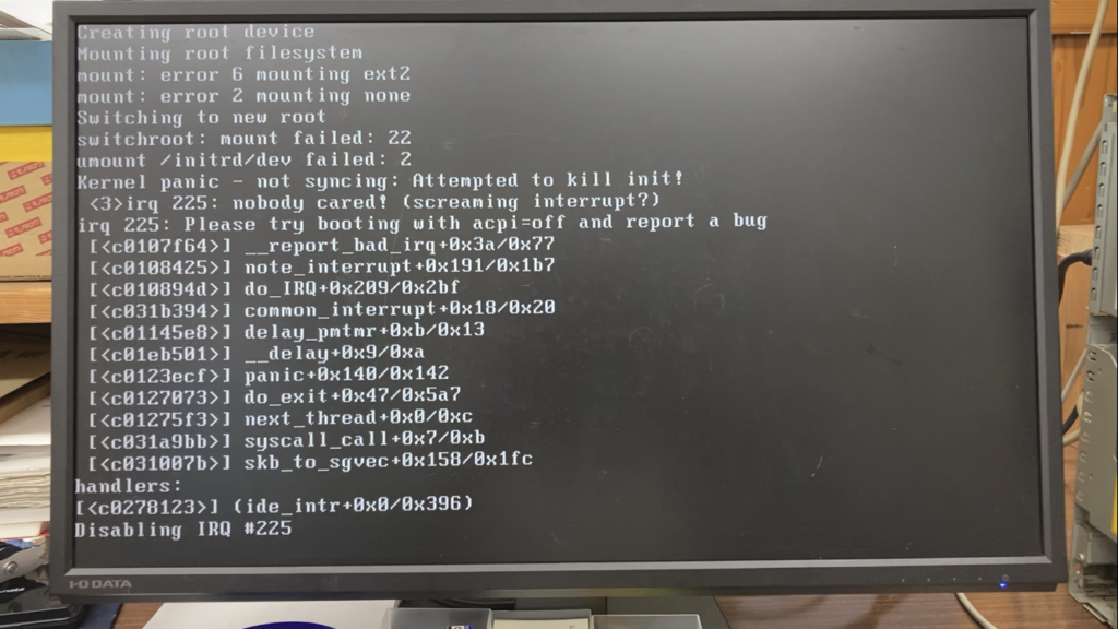 別件のシステム調査・改善でお伺いした際にクローンの CAD端末のシステム日付が不正だったのが気になり、日時を正したところ起動中に割り込みが発生して起動しなくなりました。