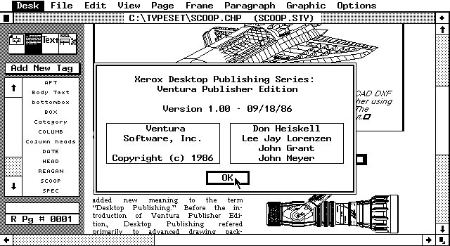 他にも CP/M(Digital Reaseach)には GEM(Graphics Environment Manager)という GUI 環境があり、その上では Ventura Publisher という極初期の DTP ソフトウェアが動作していました。