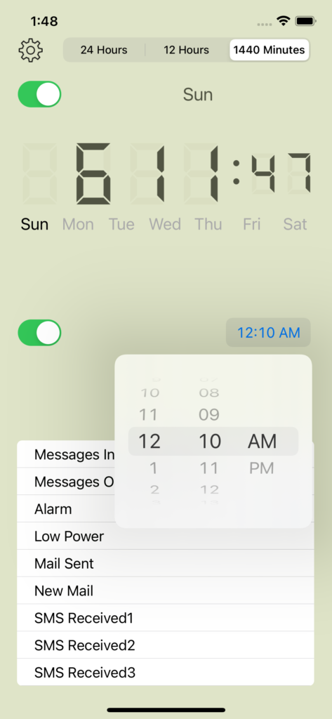 お客様から依頼された Apple Watch と連携したディマー/アラーム付きの1440分時計の一部